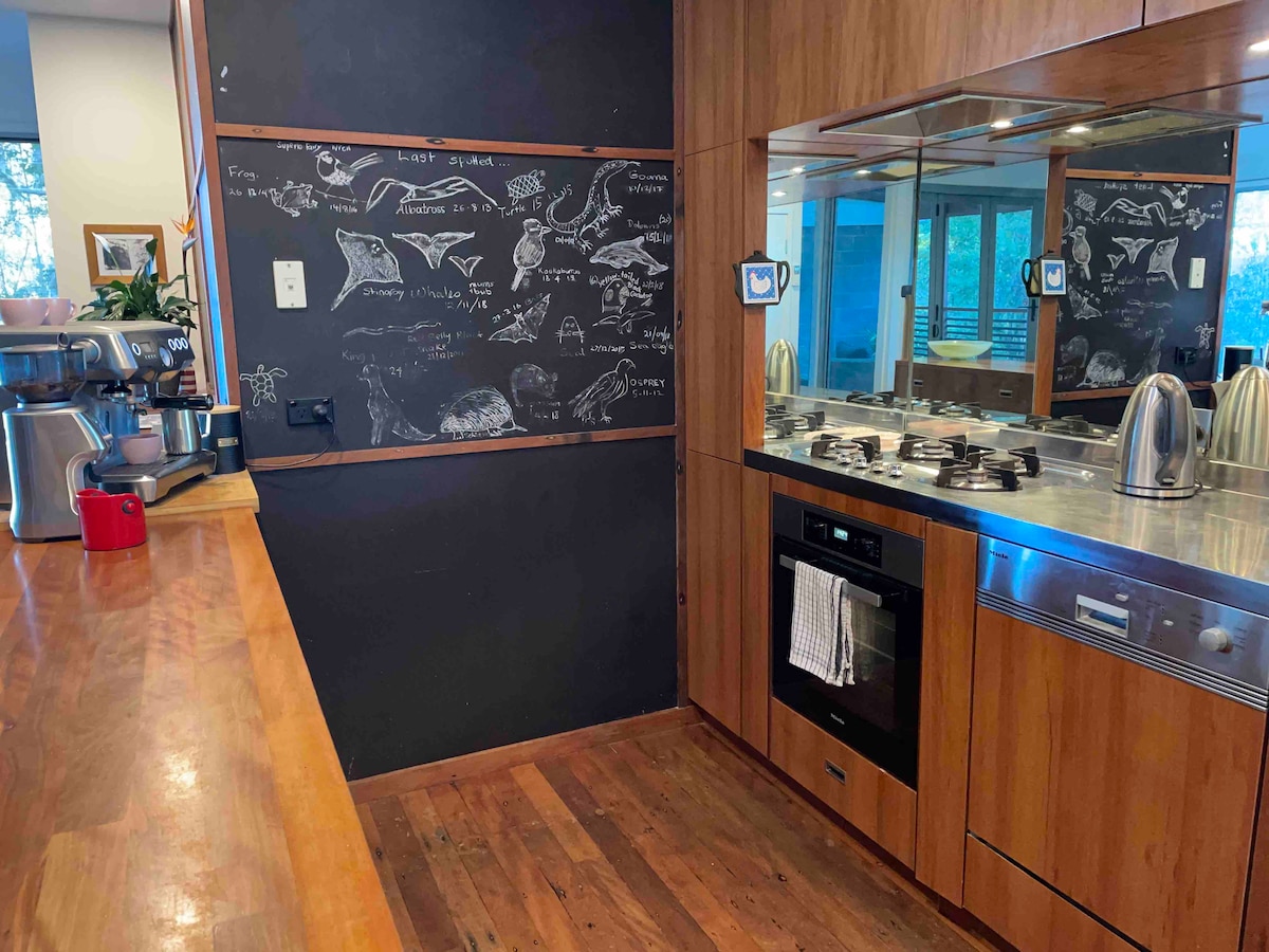 Vuelve a conectarte con la naturaleza. De vuelta al bosque estatal, esta minicasa única te ofrece lo mejor de ambos mundos. Las pequeñas cosas están situadas en 3 acres con vistas a una presa llena de patos, canguros y aves nativas, pero a un paso de la ciudad y las playas locales. Estamos COMPLETAMENTE FUERA DE LA RED y RESPETUOSOS CON el medio ambiente. ❤️ Cesta de desayuno de cortesía para disfrutar en la terraza, proyector de películas para los días de lluvia y bañera de hidromasaje bajo las estrellas por la noche. 7 tragaluces VELUX y cama tamaño king... disfruta de LAS PEQUEÑAS COSAS.