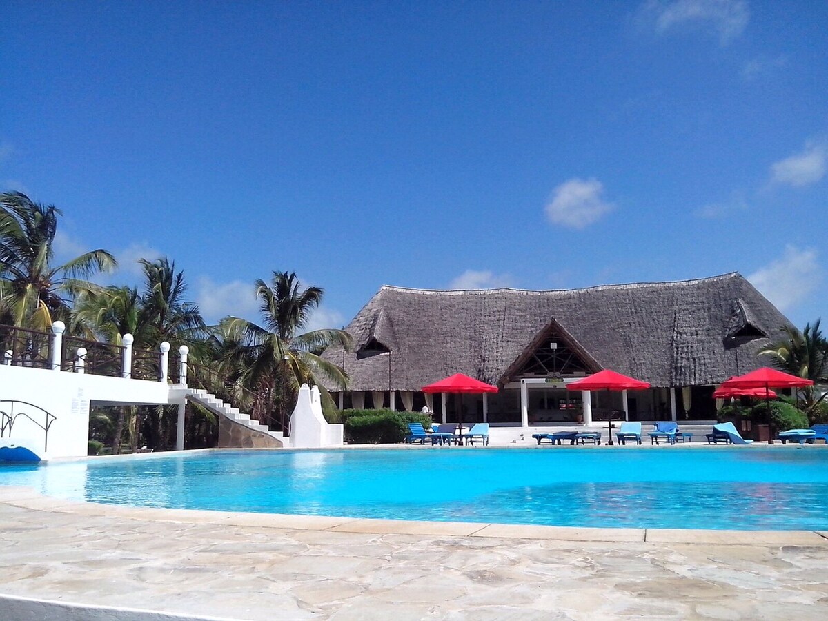 Experimenta un paraíso tropical en este espacio que se encuentra justo dentro de un centro vacacional de playa de 5 estrellas. ¡Diviértete en nuestra tranquila playa[sin vendedores de playa] rodeada de hermosas dunas de arena y un amplio frente de playa que te encantará absolutamente! El muelle de Malindi está a poca distancia a pie de la playa, al igual que el estero, donde el río Sabaki fluye hacia el océano. Hay 2 bares, un spa, gimnasio y restaurante en el complejo. El aeropuerto de Malindi, el supermercado Naivas, la ciudad de Malindi y los centros de entretenimiento están a solo 15 minutos.