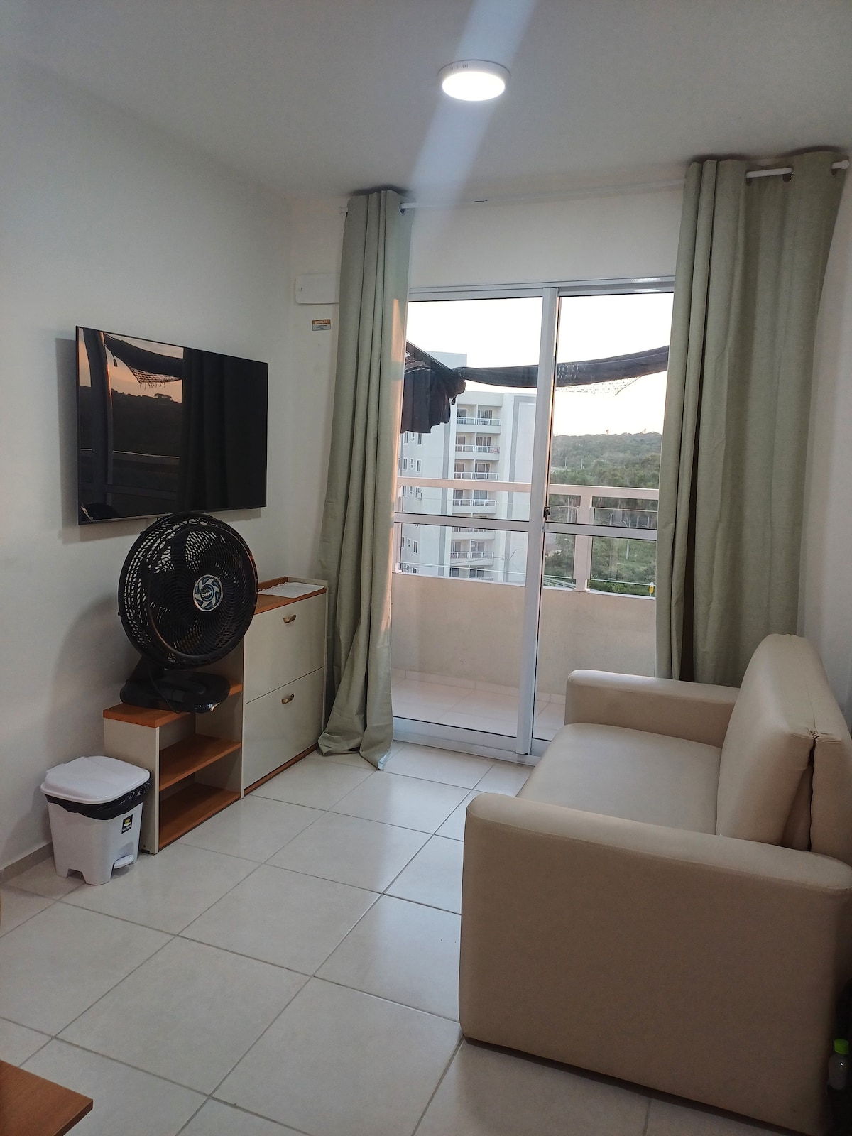 El apartamento tiene balcón con dirección al sol poniente, frente a la naturaleza, está ventilado, tranquilo, seguro, tiene un área común con parrilla, piscina, ropa, sala de fiestas y sala de juegos. Que tengas una estancia maravillosa e inolvidable.