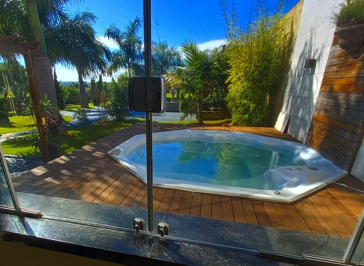 Chalé João de Barro, con bañera exterior.