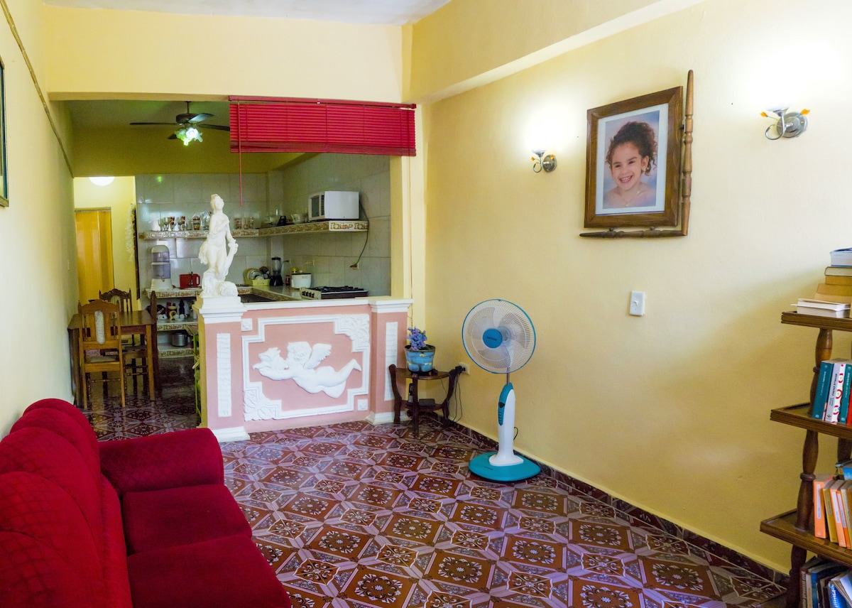 En el corazón de la ciudad, cerca de los sitios turísticos y culturales Tren Blindado, Monumento histórico del Che, Teatro La Caridad, Loma Capiro Comandancia del Che. Desde el balcón puedes disfrutar de festividades culturales en la Plaza Central y disfrutar de aire puro, apartamento con total privacidad, habitaciones amplias y limpias, cocina con todos lo necesario para cocinar y Wifi a su disposición, estaremos siempre listos para usted. Será siempre un placer recibirlos con mucho amor.
