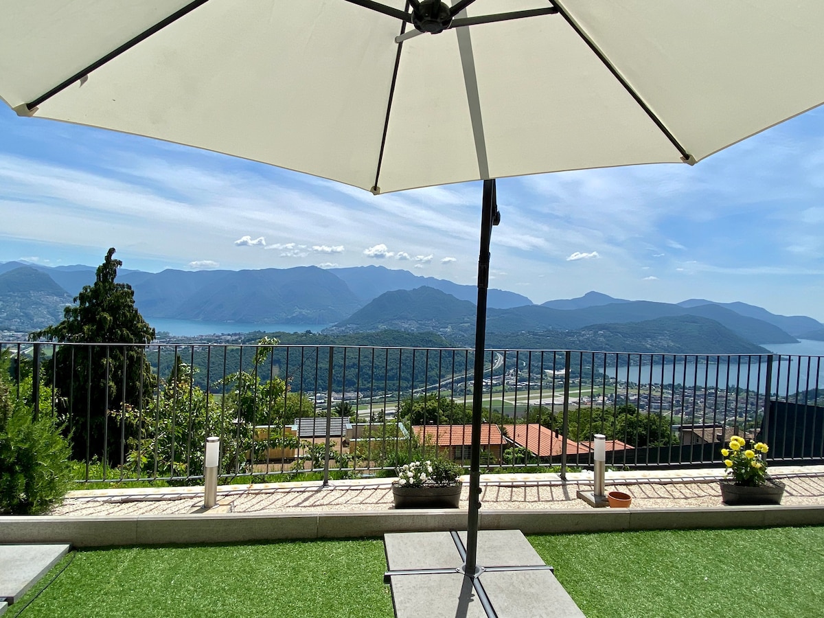 Amplia y elegante casa de vacaciones para hasta 4 personas en dos plantas con aproximadamente 100 metros cuadrados de espacio habitable. 2 balcones y una terraza con 30 metros cuadrados adicionales invitan a tomar el sol, relajarse y disfrutar. Todas las habitaciones están diseñadas individualmente y tienen una vista impresionante del lago de Lugano y las montañas. La privacidad es muy importante aquí, ya que al ser la última casa de la calle y justo al lado del bosque, no se verá molestado, y aun así estará a solo 10 minutos en coche del centro de Lugano.
