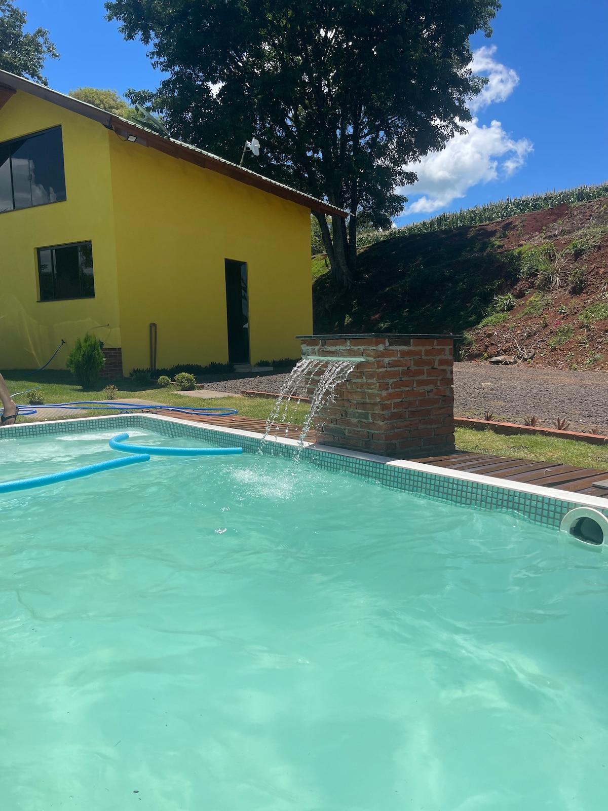 Una espaciosa cabaña en medio de la naturaleza. Excelente espacio para reunir a familiares y amigos, que contiene 1 dormitorio con 1 cama doble + 1 individual, un ático con 1 cama doble + 2 individuales + 1 colchón doble. Baño en el ático, en la parte baja de la casa y en la parte inferior, donde tiene acceso al patio trasero, estufa de leña, parrilla, hamacas, sendero para caminar, lago de pesca y un hermoso arroyo con agua cristalina.