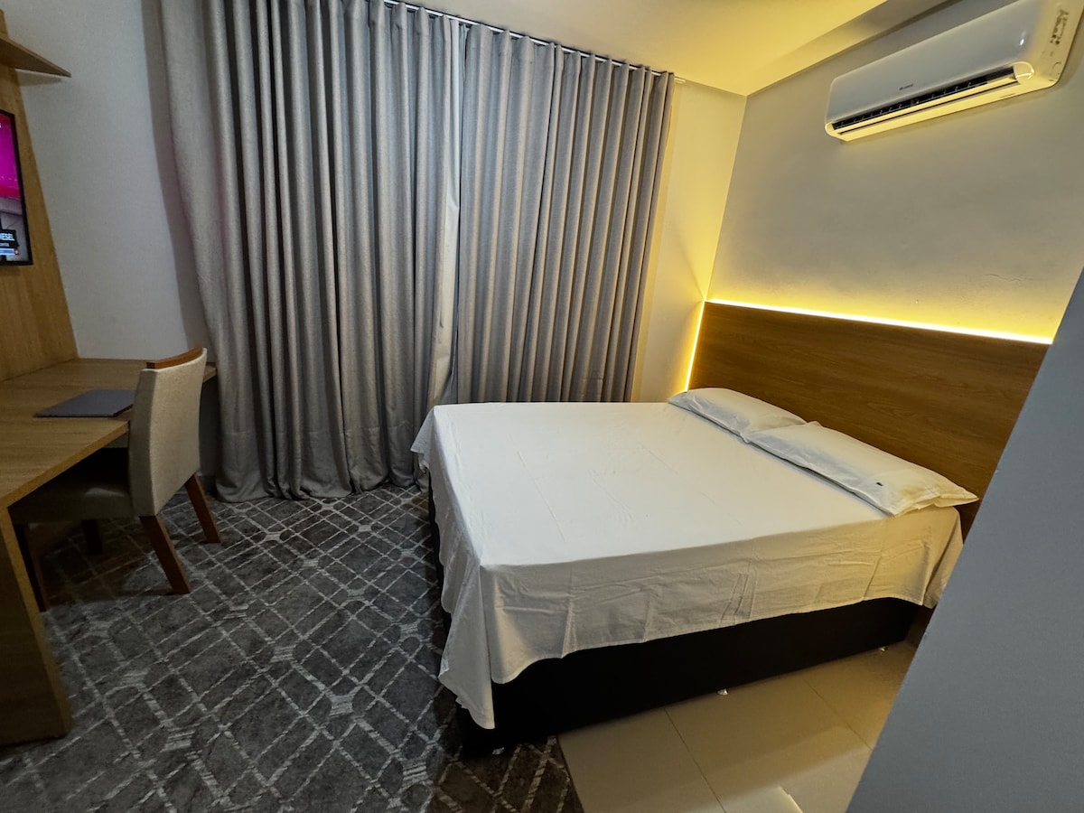 Alojamiento tranquilo para 2 personas ¡Bienvenido a este encantador y cómodo alojamiento, ideal para parejas o viajeros individuales que buscan paz y comodidad! Ubicada en un entorno tranquilo, esta casa ofrece todo lo que necesitas para una estancia agradable. Espaços Dormitorio: un acogedor dormitorio con una cama doble, aire acondicionado, mesita de noche con lámpara y decoración moderna. Ideal para un buen descanso. Cerca del Centro de Convenciones