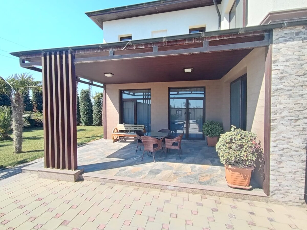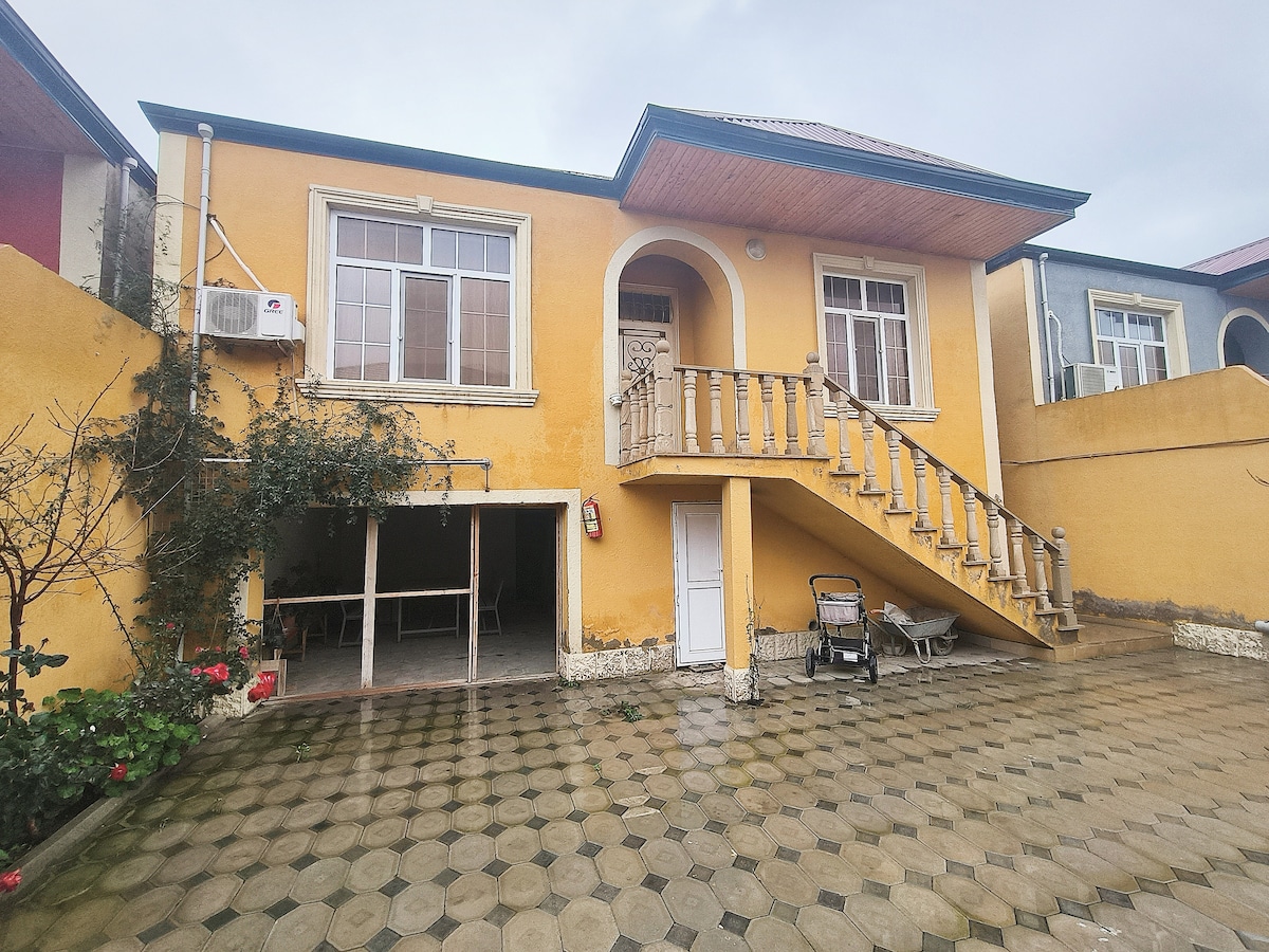 Acerca de este espacio: Disfruta de una estancia relajante en esta acogedora y elegante casa de un piso ubicada en la tranquila zona de Mardakan. La casa está totalmente equipada y es ideal para familias, parejas o grupos pequeños que buscan relajarse cerca del mar. La casa está a solo 10 minutos en auto (7 km) de la playa y rodeada de vegetación, ofreciendo comodidad y