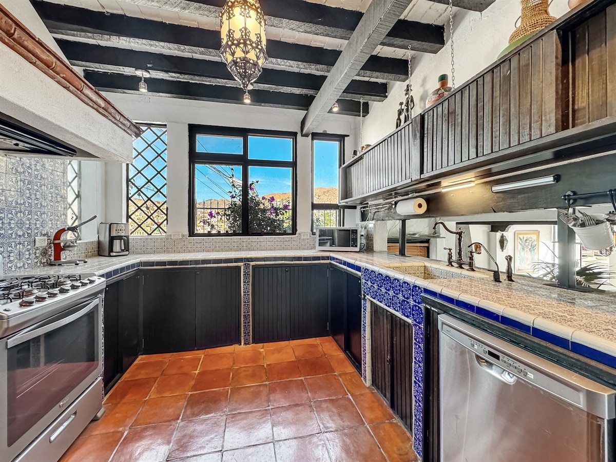 DISPONIBLE DESDE 5 NOCHES Y ESTANCIAS LARGAS NO FIESTAS 1 MASCOTA EDUCADA ANTES DE RESERVAR LEER LA DESCRIPCIÓN DE LA CASA y VER TODAS LAS FOTOS Si LEES pocos reviews de la casa es porque que la mayoría de los huéspedes que he tenido son de estancias largas, de 1- 5 años promedio. HERMOSA Y ESPACIOSA CASA TIPO MEXICANO CON BÓVEDAS, TECHOS DE VIGA PISOS DE BARRO ORIGINALES PUERTAS DE MADERA COCINA TOTALMENTE EQUIPADA TERRAZAS CON LA MEJOR VISTA, A 10 MIN CAMINANDO AL CENTRO DE LA CIUDAD
