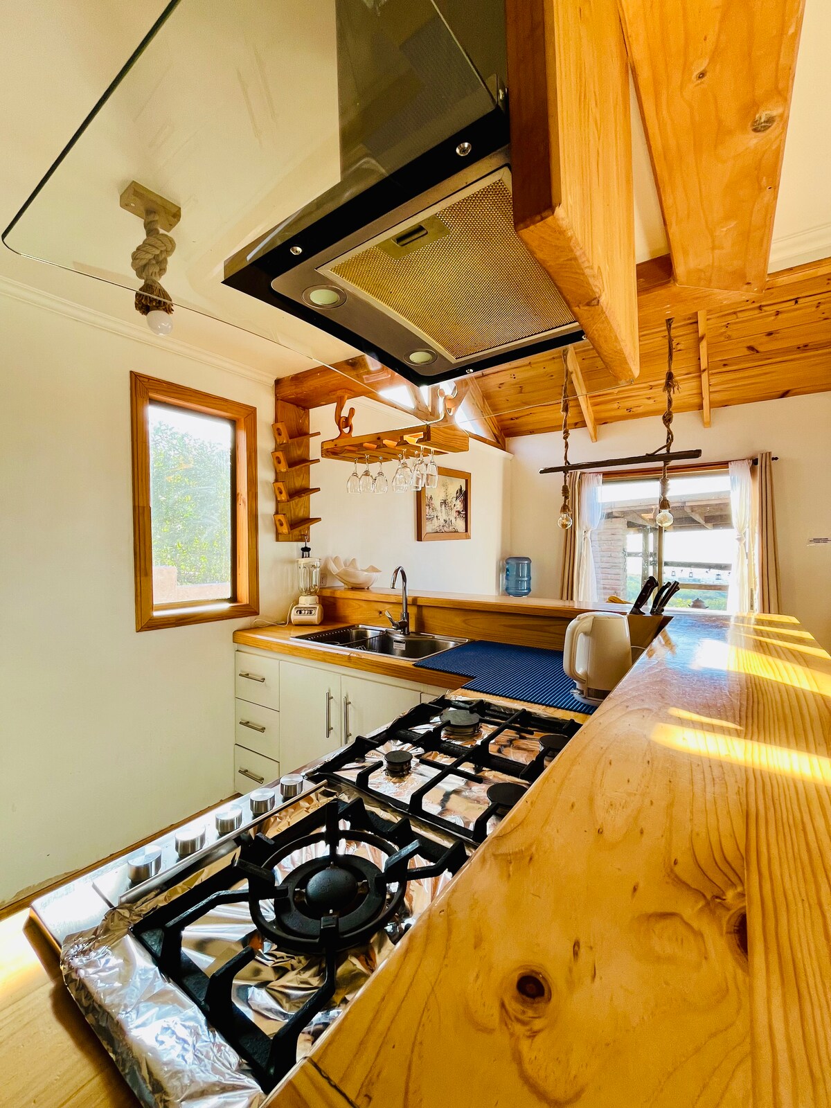 CASA Eco COLIBRI Una casa auténtica y ecológica, construida con materiales nobles y naturales con maderas de roble, fardos de paja y barro. Con un exelente confort térmico, luz natural y un cálido ambiente interior. AREAS COMUNES Emplazada en un entorno tranquilo y natural, alrededor de jardines y animales de campo (caballo, ovejas, patos y gallinas). Cuenta con espacios al aire libre compartidos con otros residentes. Quincho con todo equipado y piscina ecológica libre de cloro.
