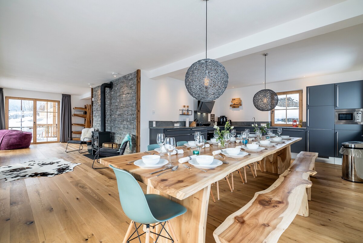 Este espacioso y moderno chalet se ha remodelado en 2020. La espaciosa casa cuenta con 4 dormitorios, una gran cocina abierta y sala de estar, chimenea abierta y un spa privado. Está totalmente equipado para unas excelentes vacaciones familiares en los Alpes y cuenta con un gran jardín natural con vistas a la montaña y un hermoso pequeño arroyo que lo atraviesa. Si buscas un escondite para tu familia, no busques más. Solo damos la bienvenida a los huéspedes con reseñas de AirBnB. ¡Gracias!