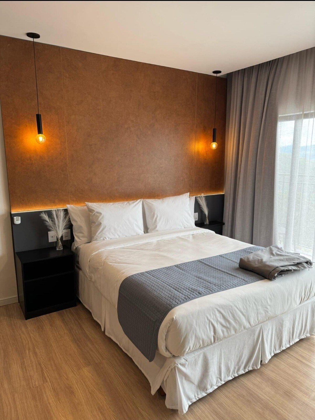 Espaço novo, moderno e confortável, que conta com: -Wifi privativo -Móveis novos e planejados -Ar condicionado (quente e frio) -Fechadura eletrônica e câmeras de segurança -Smart TV com vários canais disponíveis -Roupa de cama e toalhas de banho de excelente qualidade inclusas -Cozinha equipada - toalheiro elétrico - cortinas com blackout -Bicicletário -Espaço para Home office -Excelente Bairro e ótima localização: perto de loja de conveniência 24h, farmácia, lanchonete, praça, Unimed e Unifei