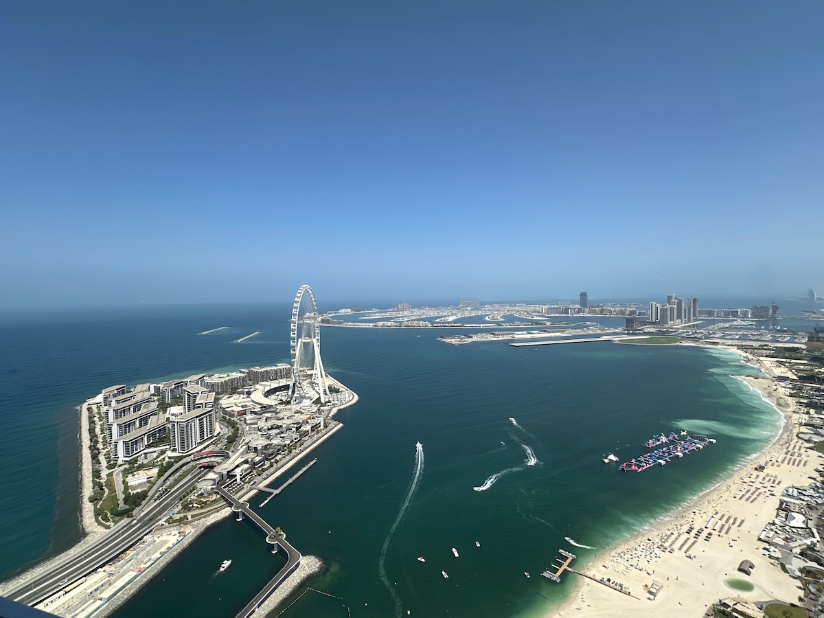 Bienvenido a tu escapada a Dubái en el corazón de JBR. Despiértate todas las mañanas con vistas panorámicas del Golfo Pérsico desde el piso 34 de una de las casas frente a la playa más emblemáticas de la ciudad. Ya sea que estés aquí para relajarte, explorar o trabajar de forma remota, este alojamiento está diseñado para ofrecerte lo mejor de la comodidad, la conveniencia y el paisaje inolvidable de Dubái. Hemos recibido a familias, recién casados, aventureros solitarios y viajeros internacionales. Reserva ahora y haz que tu estadía en Dubái sea inolvidable.