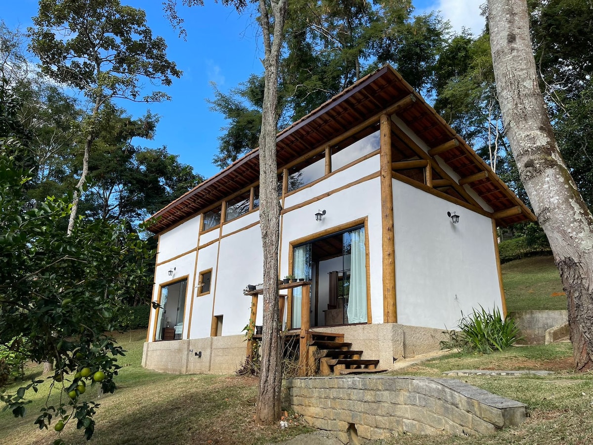 Relájese en este espacio tranquilo y elegante. Nuestra cabaña es una casa de huéspedes con estructura de madera, muy agradable y acogedora. ¡Ubicada dentro de un área de preservación ambiental, en un condominio cerrado, con conserjería las 24 horas, lagos para pescar y mucha naturaleza! Estamos a unos 20 km de Juiz de Fora. Para aquellos que buscan tranquilidad en medio de la naturaleza. A partir de 2024, la piscina y el área de ocio se compartirán con el nuevo chalet y los posibles huéspedes de la casa principal.