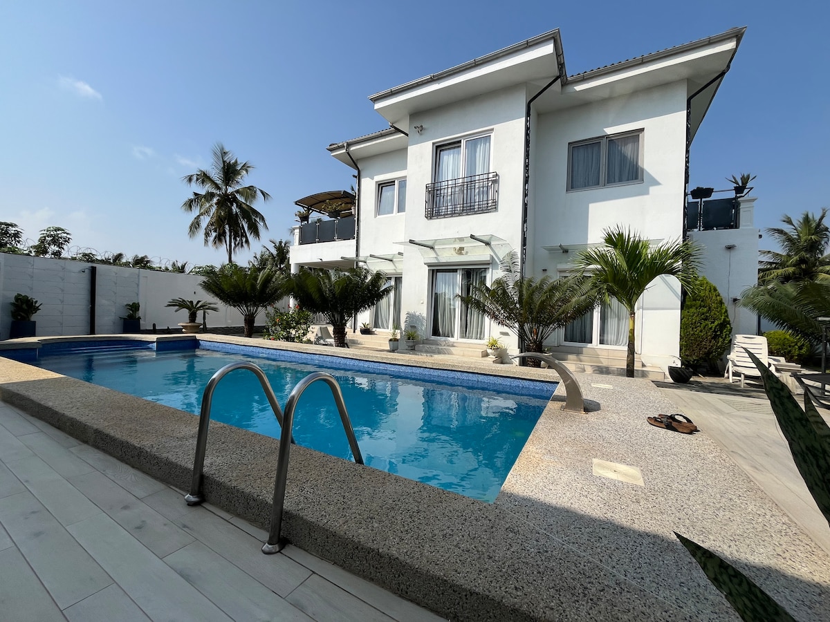 Petit Hambourg - Villa with pool - for your luxury vacation only 2.9 km from the beach. Enjoy your stay in this exceptional accommodation. A magnificent, modern guesthouse, a very comfortable haven of peace. A little Away from the hustle and bustle of Lomé. You rent a building with 3 bedrooms,for yourself and your travel companions (max 6 people) alone. Le Petit Hambourg is 2.9 km from the Turnaround Baguida Monument on the devego Road on a sandy road.