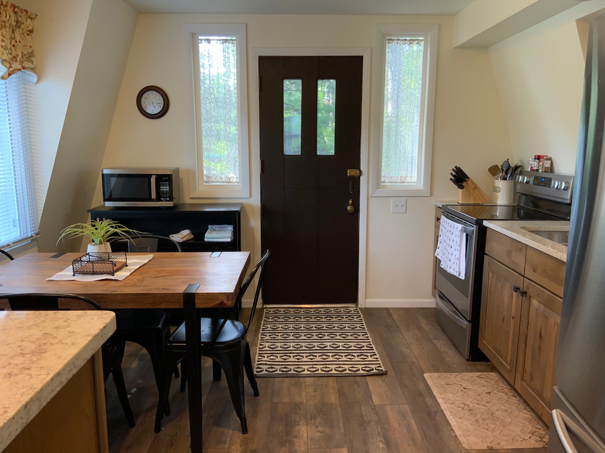 Disfruta de este exclusivo alojamiento de 1 dormitorio/2 camas, 1,5 baños en forma de A en el río Chocolay, a unas 5 millas del centro de Marquette, justo al lado de la autopista M-28. Espera ruido de tráfico. Tiene una cama queen arriba con un baño completo adjunto con ducha/sin bañera y un sofá/futón de tamaño completo abajo con un medio baño en la planta principal. Hay una estrecha escalera de caracol que conduce a la planta superior. La lavadora, la secadora y la sauna eléctrica se encuentran en el sótano, que solo tiene una entrada exterior, accesible por las escaleras exteriores.