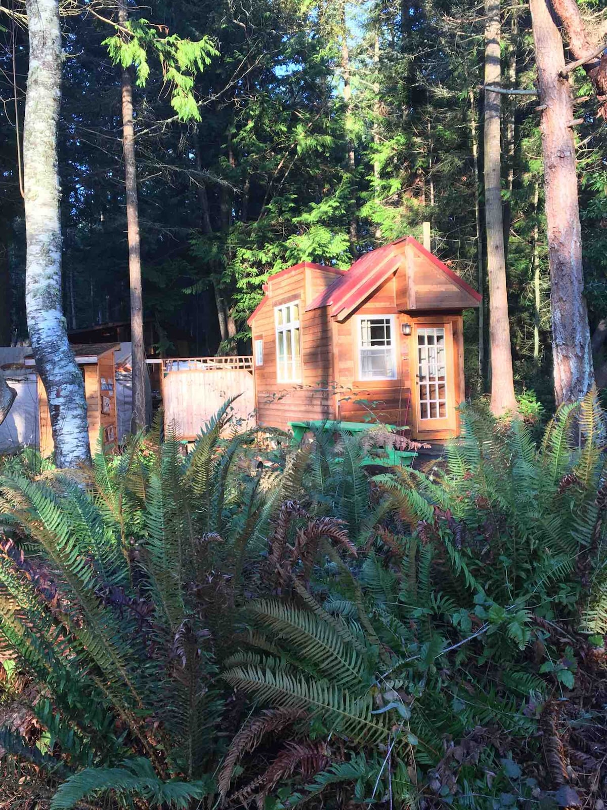 Port Townsend, Washington. Bienvenido a nuestra escapada romántica al campo ubicada en una parcela arbolada de 10 acres a solo 12-15 minutos de Port Townsend o Port Hadlock. Se encuentra en el centro de los servicios de la zona, cervecerías, bodegas y sidrerías. Nuestra casa de campo ha sido diseñada para ser un espacio acogedor, cálido y romántico con carpintería personalizada, mostradores de madera, calefacción por suelo radiante y toques especiales para que tu estancia sea agradable. Tenemos un jardín de temporada con hierbas y manzanas en un hermoso patio privado al aire libre.