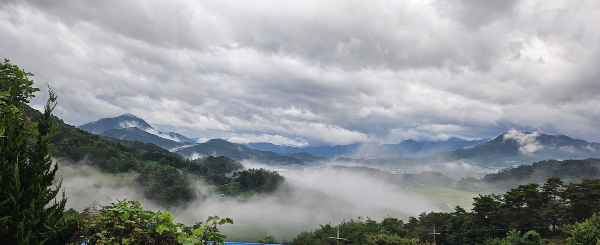 지리산 언저리 조용한 별장(독체) 비대면체크인 바베큐전용야외테이블 불멍벽난로 노래방 구비