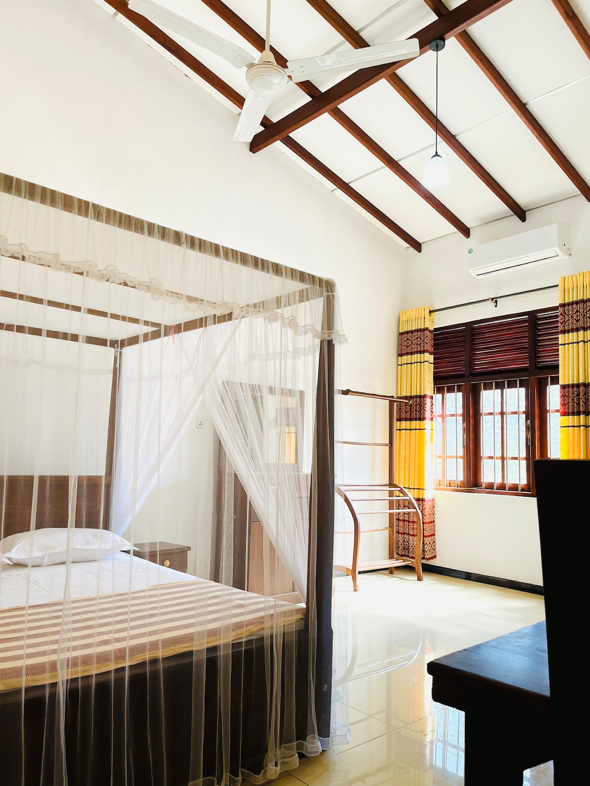 Dónde estarás Weligama, provincia del sur, Sri Lanka. Es una zona muy tranquila y silenciosa con vista a la Playa Atractiva. Si bien estamos en una zona tranquila y remota, es fácil y rápido llegar a la playa o a la ciudad a menos de 80 metros de la playa y a 250 metros de la ciudad. Cuando lo necesites, podemos pedir un vehículo de tres ruedas para llevarte a donde quieras.