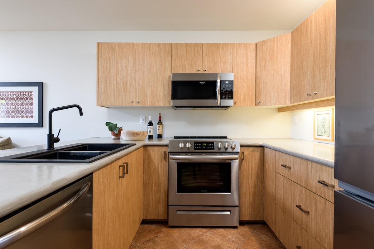 Disfruta de vistas panorámicas al mar, a la montaña, a la playa y al atardecer durante todo el año en Hale Meli (abreviatura de «Hale Mahina Meli» o «Casa de luna de miel» en hawaiano), un apartamento en el último piso con exquisitos interiores de diseño y servicios de alta gama. Con una ubicación ideal en Kihei, el apartamento está justo enfrente de una de las mejores playas de Maui y a poca distancia a pie de restaurantes, tiendas y tiendas de comestibles. También es tu base de operaciones perfecta para explorar el resto de Maui, ya que está situado en el centro de la isla.