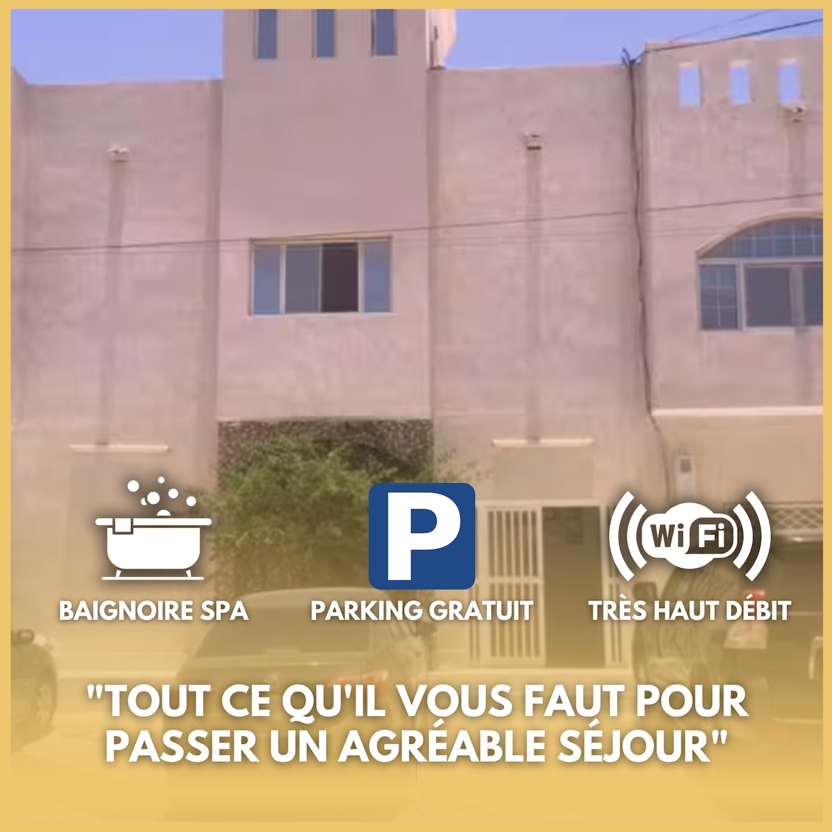 Te damos la bienvenida a DarFeyti Cocina ☑completa. ☑Increíble baño con ducha ☑ Jabón, champú y toallas cómodas ☑Aire acondicionado ☑Refrigerador. ☑1 hora en auto del aeropuerto internacional de Nouakchott–Oumtounsy. Agrega mi anuncio a tu lista de deseos haciendo clic ❤️ en la esquina superior derecha.