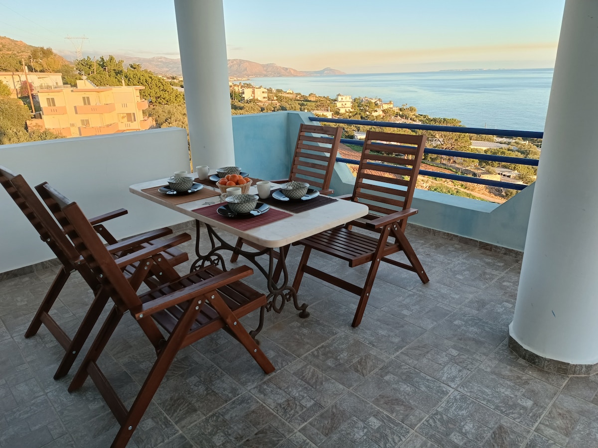 ¡Disfruta de unas vacaciones tranquilas en el mar! Despiértese por la mañana viendo un amanecer único desde su cama. Relájate en el jacuzzi al aire libre, en la piscina compartida, en las terrazas, escuchando el sonido de las olas y el canto de los pájaros. Las vistas son excelentes desde cualquier lugar. Frente a usted, el azul infinito del mar de Creta, a su alrededor, la impresionante naturaleza cretense. Desde los dos salones hasta los dormitorios, el comedor, la cocina, los baños, la ducha al aire libre, la vista es impresionante.