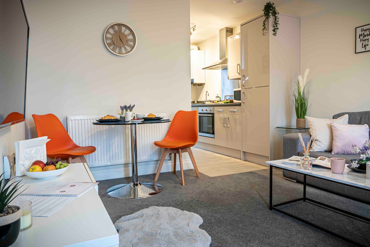 Con fantásticos amaneceres sobre la bahía de Swansea, nuestro elegante y cómodo dormitorio y 1 sofá apartamento muy cómodo le brindan esa verdadera sensación de estar lejos de casa. Tiene un amplio espacio para 2 a 4 adultos y se encuentra en el corazón de las tierras altas con sus bares y cafés de moda. Disfruta de los lujos adicionales de la calefacción por suelo radiante, Netflix y Amazon Prime, desayuno con vistas al mar y tu propio patio/área de terraza. El piso tiene 1 cama tamaño king con baño privado. En el salón, un cómodo sofá cama.