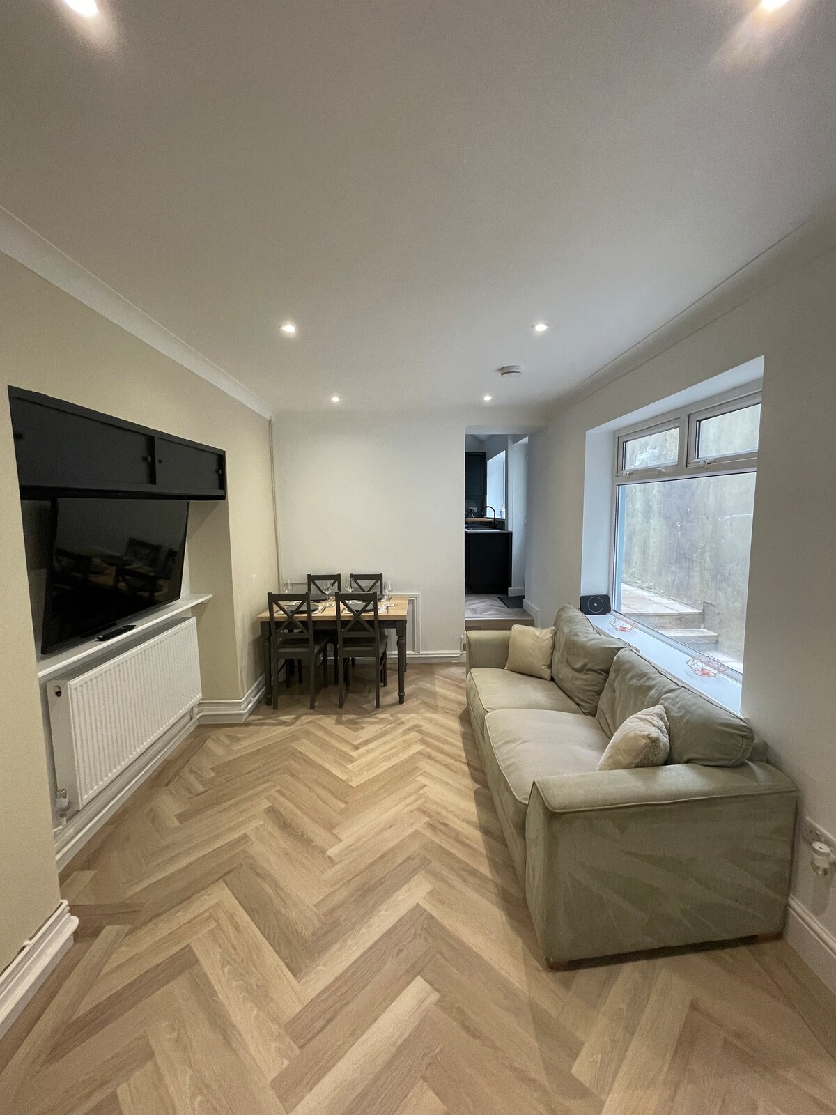 Se encuentra en el corazón del puerto deportivo de Swansea, a 30 segundos a pie de la playa. Un pequeño agujero de perno perfecto con un dormitorio de lujo baño extra grande y lavadero cocina. Ten en cuenta que no hay sala de estar. Este piso de un dormitorio ocupa la planta baja de una gran casa de la ciudad. Entrada trasera con código de seguridad para su comodidad. Esto será ideal para una escapada rápida o para alguien que no desee pasar largos períodos en las instalaciones. Aunque todo está provisto de TV , ropa de cama de lujo con nueva cama doble y ropa de cama. Los tés, el café y la leche se proporcionarán con jabones de manos de lujo y crema de manos. También se proporciona un aparcamiento gratuito. Prometemos que será el más limpio y conveniente para los bares, restaurantes locales, playa y el centro de la ciudad, que está a 10 minutos a pie. Perfecto para una noche barata para las parejas ocupadas que buscan dormir cómodamente.
