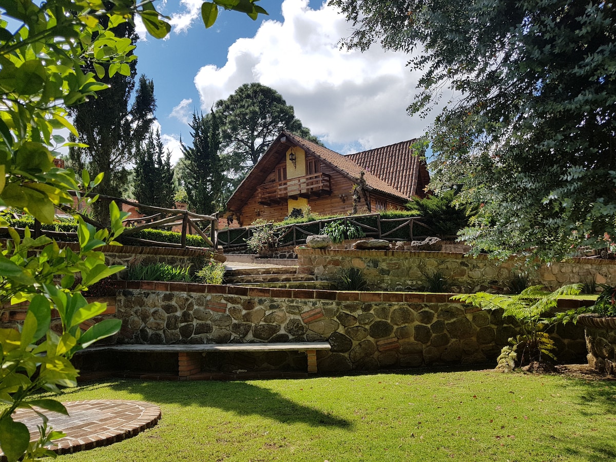 Cabaña tipo Chalet en madera interior y exterior, bellamente decorada, grandes áreas verdes privadas, vistas panorámicas, diversidad de plantas, iluminación de ambientación.