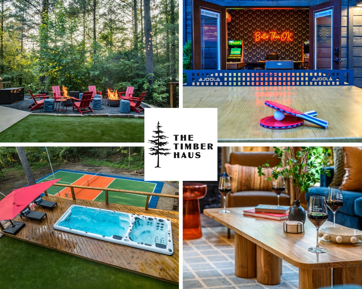 The Timber Haus · Cancha de pickleball + Spa + Sala de juegos