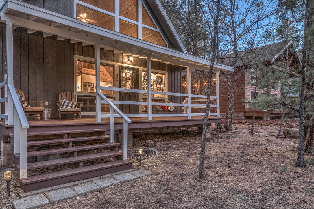Christmas Tree Cabin está diseñada para inspirar la sensación de unión que proviene de estar con tus amigos y familiares durante las vacaciones. Esta cabaña construida en 1973 se encuentra en Pinetop, Arizona, ha sido actualizada y diseñada para alojar a 12 huéspedes. La cabaña está rodeada de pinos en un callejón sin salida en el exclusivo Pinetop Lakes Country Club. La cabaña del árbol de Navidad tiene 1550 pies cuadrados y capacidad para 12 personas y está bien abastecida para que tu estancia sea perfecta. 4 dormitorios y 2 baños.
