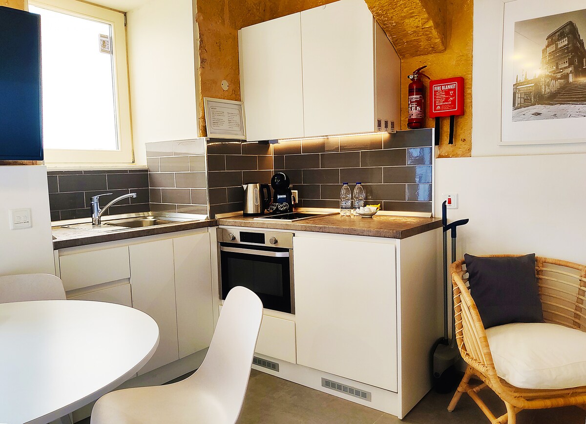 Nuevo y Moderno Apartamento Sorrento Vista Mar con Terraza y balcones ubicado en el corazón de Marina Grande, una de las zonas más exclusivas de Sorrento. Perfecta para familias y grupos de amigos, esta casa frente a la playa puede alojar cómodamente hasta 5 huéspedes y se completa con 1 dormitorio con cama tamaño king y 1 cama individual, 1 baño, cocina con comedor, sala de estar con sofá cama tamaño queen (colchón de espuma viscoelástica), terraza con vistas al mar, solárium y zona de comedor exterior.
