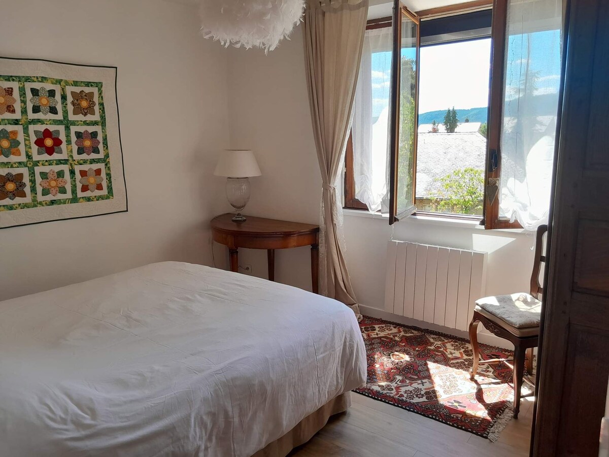 Simplifica tu vida en este tranquilo y céntrico alojamiento. Al pie de la montaña, estás a 400 m del centro del pueblo. Alojamiento T3 en el 1er piso con escalera exterior privada compuesto por: 2 dormitorios con cama de matrimonio y baño en cada dormitorio Un baño separado Una despensa-lavadero Un salón - salón - cocina Acceso independiente con caja de llaves. Aparcamiento privado gratuito. ☺️