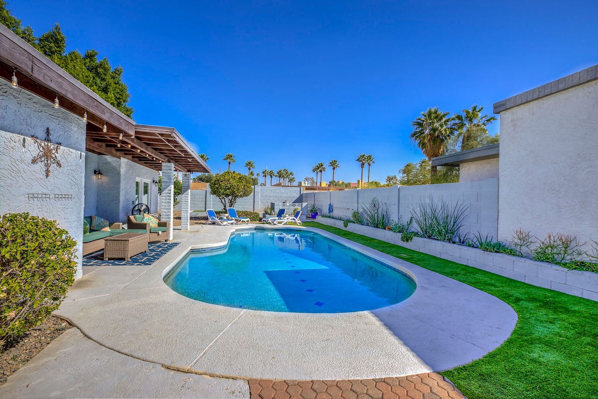 Disfruta de un fácil acceso a todas las atracciones del valle desde este refugio céntrico ubicado cerca de la base de South Mountain. Centros comerciales, vida nocturna de Scottsdale, senderismo, golf, ASU, MLB, NFL, NBA, NASCAR, parques acuáticos, zoológico, aeropuerto, todo a pocos minutos. Pero, ¿por qué irse de aquí? Patio cubierto con TV con proyector de pantalla grande, comedor, piscina (CLIMATIZADA si lo deseas) o simplemente usa el jacuzzi y pasa el rato alrededor de la mesa de fuego. Tal vez te pongas el sombrero de chef y hagas una barbacoa si te apetece. ¡Bienvenido!