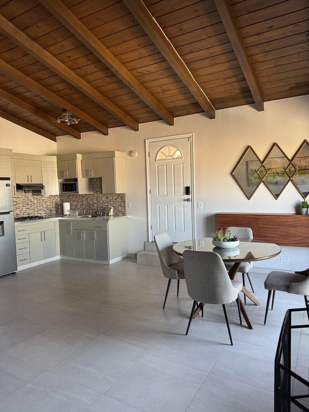 Un Airbnb tipo Zen, que combina un diseño de alta gama con servicios de ocio y centro vacacional. Autogestionado: los detalles importan. Vista al mar lejana. Cerca de lugares emblemáticos de SD; dentro de un vecindario tranquilo rodeado de cañones y parques. Una escapada maravillosa. Un diseño que provoca una experiencia única; limpieza de interiores. Cada habitación es única para que puedas relajarte en el momento. Un solárium en el segundo piso ofrece vistas increíbles; sumérgete en la bañera de hidromasaje en un exquisito baño; una cocina boutique y comedor abierto a un jardín sensorial.