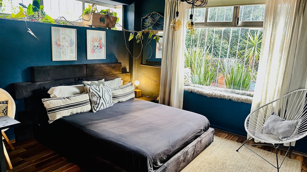 Descubre nuestro acogedor Airbnb en el barrio de Roma Sur de la Ciudad de México. Con una decoración tradicional y cálida, este pequeño pero tranquilo espacio te ofrece comodidad y autenticidad. Además, cuenta con una azotea para tomar el sol, equipada con camastros para tu relax total. No te pierdas el mercado local que se instala los sábados, donde podrás disfrutar de una variedad de productos frescos y auténticos. Ubicado cerca de todo, podrás explorar fácilmente la vibrante cultura.