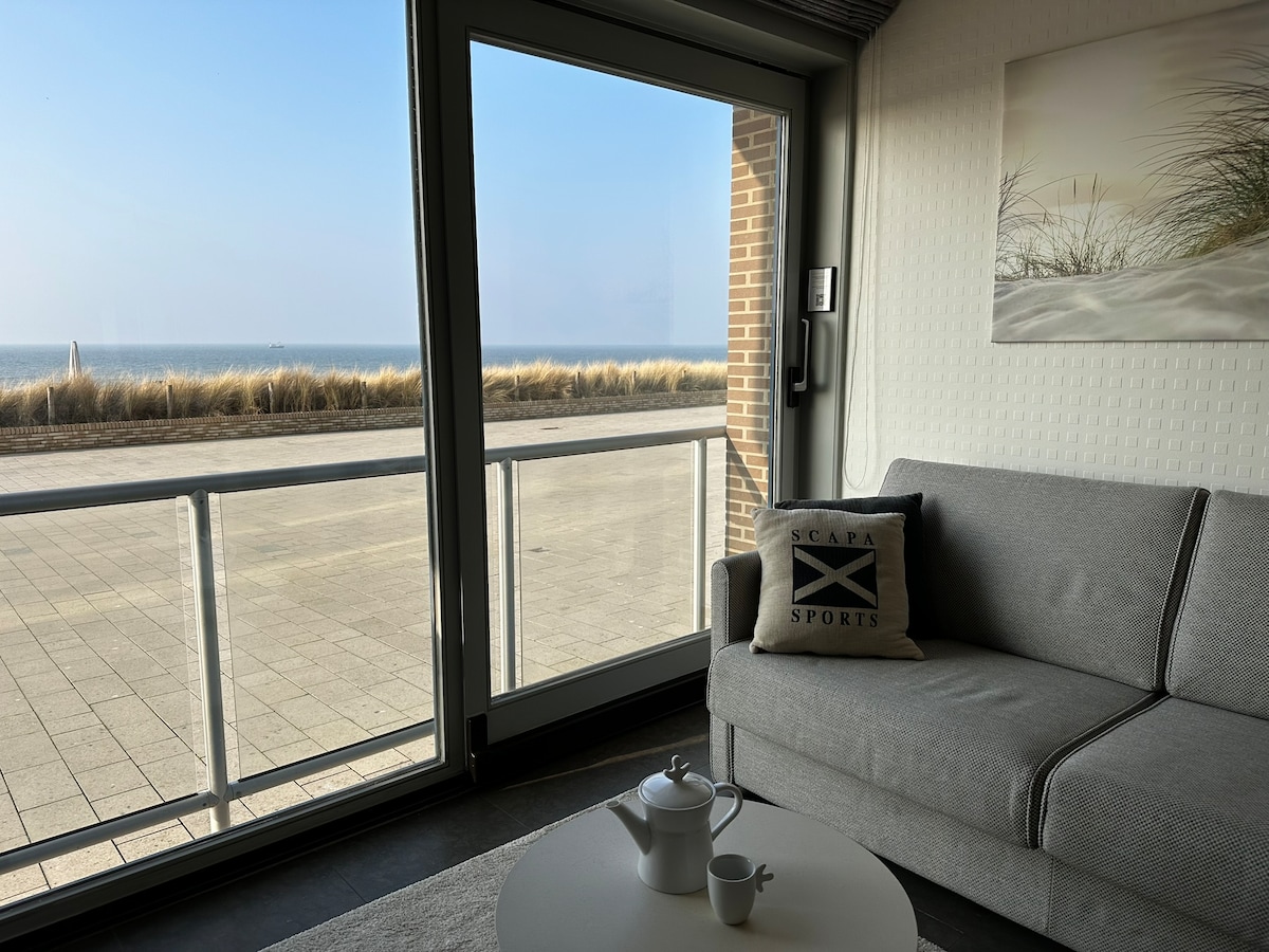 Te damos la bienvenida a tu tranquilo refugio junto al mar: despierta con vistas panorámicas al mar del Norte y relájate con el sonido de las olas desde tu balcón privado. - Capacidad para 2 personas | 1 dormitorio | 2 camas | 1,5 baños - Vista frontal al mar y balcón privado - Frente al agua con acceso compartido a la playa. - TV de alta definición de 55 pulgadas, wifi (22 Mbps) y espacio de trabajo - Ascensor, entrada autónoma (caja de seguridad) - Cocina y comedor. Nota: Máximo 2 personas, solo adultos. No hay espacio para una cama de bebé.