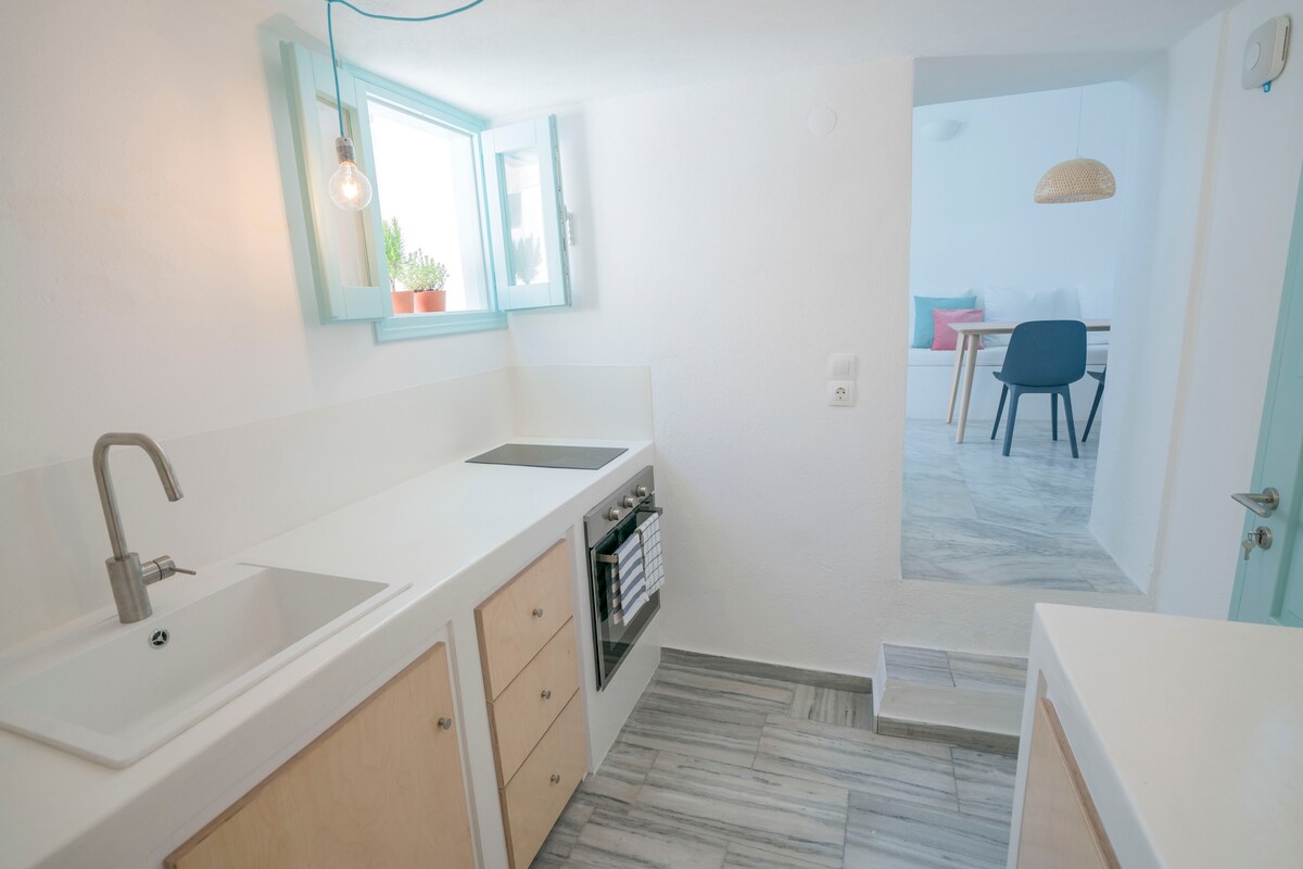 Vima Home ha sido cuidadosamente renovado utilizando técnicas tradicionales de la zona en combinación con elementos modernos para crear una experiencia única. Las formas orgánicas de las habitaciones de estilo cueva crean un ambiente acogedor en el interior, mientras que el patio de la casa te invita a relajarte bajo la colorida buganvilla o a soñar despierto con vistas al mar Egeo.