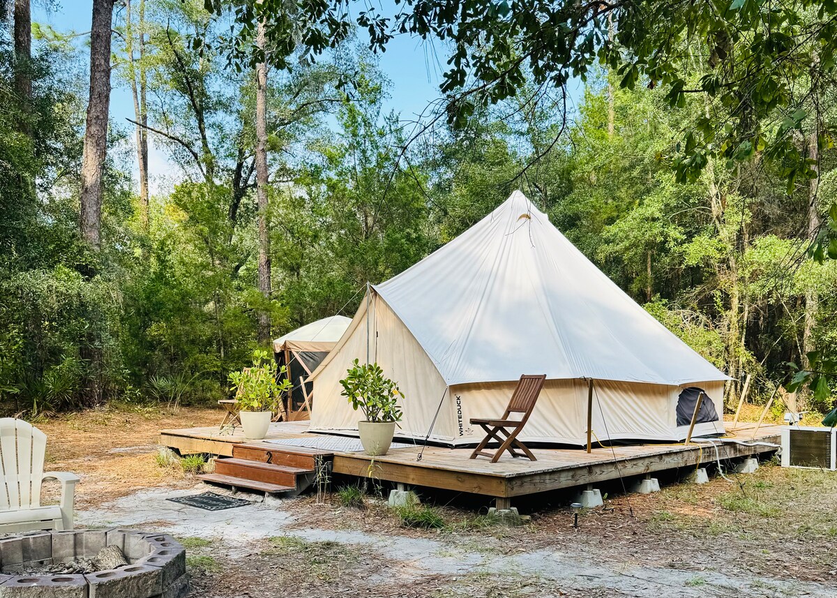 - Experimenta la naturaleza con todas las comodidades de un hogar. ¡El aire acondicionado te mantiene fresco! ¡El calentador te mantiene caliente! - Cama tamaño king Casper, terraza, chimenea, cafetera, - Baño privado - Ubicado en Black Creek. - Amplia piscina sobre el suelo con terraza. - Parrilla. - A menos de 15 minutos de tiendas de comestibles/restaurantes locales. - A 40 minutos del centro de Jax. - A 50 minutos de San Agustín. Si tienes dificultades para reservar tu fecha preferida o tienes un grupo, envíanos un mensaje para obtener más información sobre 1 tienda de campaña y cabaña adicionales en la propiedad.