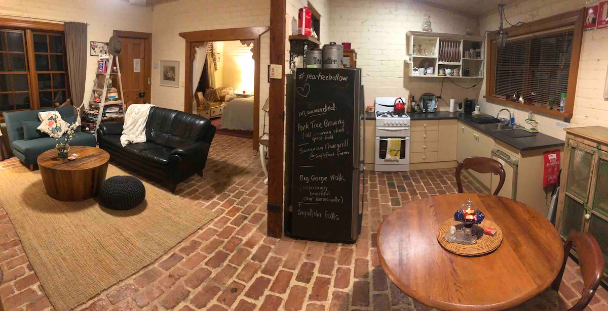 Lejos de una carretera principal, por un camino de entrada privado, se encuentra Claret Ash Cottage. A solo unos pasos de la puerta principal hay un jardín orgánico de flores y hierbas donde se cultivan plantas para productos para el cuidado de la piel. Te invitamos a explorar la propiedad de 33 acres y una visita obligada es la vista panorámica desde la colina. El tranquilo camino de tierra bordeado de árboles que hay detrás es un sendero perfecto para caminar. Esta granja está a 35 minutos de Adelaida y a solo 10 minutos en coche de tiendas o restaurantes locales. Te invitamos a experimentar la vida en una granja en funcionamiento.