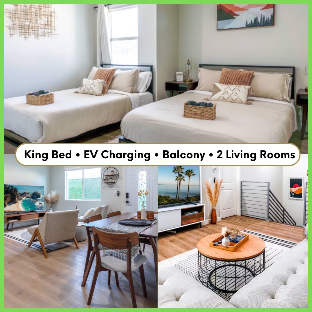 ✨ Bring the whole family! Make yourself at home in this spacious 4-bedroom getaway with 6 comfy beds perfect for families and friends. The open modern layout is filled with natural sunlight thanks to skylights throughout, and every detail has been designed to feel cozy and welcoming. 🌞🏡 Relax in the living room with a huge 70” TV, cook together in the fully stocked kitchen, or share a meal outdoors on the patio table for 8. Plus, enjoy a fun photo wall that captures the true Cali vibes! 🌴📸