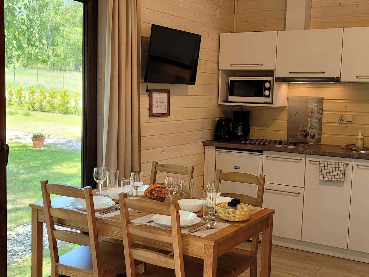Nuestra casa de madera ha sido diseñada de forma moderna y funcional. Hemos intentado integrarnos perfectamente en el entorno y no perturbar la naturaleza que nos rodea por todos lados. Nuestro pequeño pueblo no se ha rendido al tiempo, todo funciona aquí como antes. No hay tiendas ni restaurantes, no hay turistas, solo silencio y naturaleza. El pueblo está rodeado de prados y el bosque de Puszcza Piska, a 10 km de las ciudades más cercanas. Las grullas y las innumerables aves acuáticas te invitan a un espectáculo diario. Aquí encontrarás la paz.