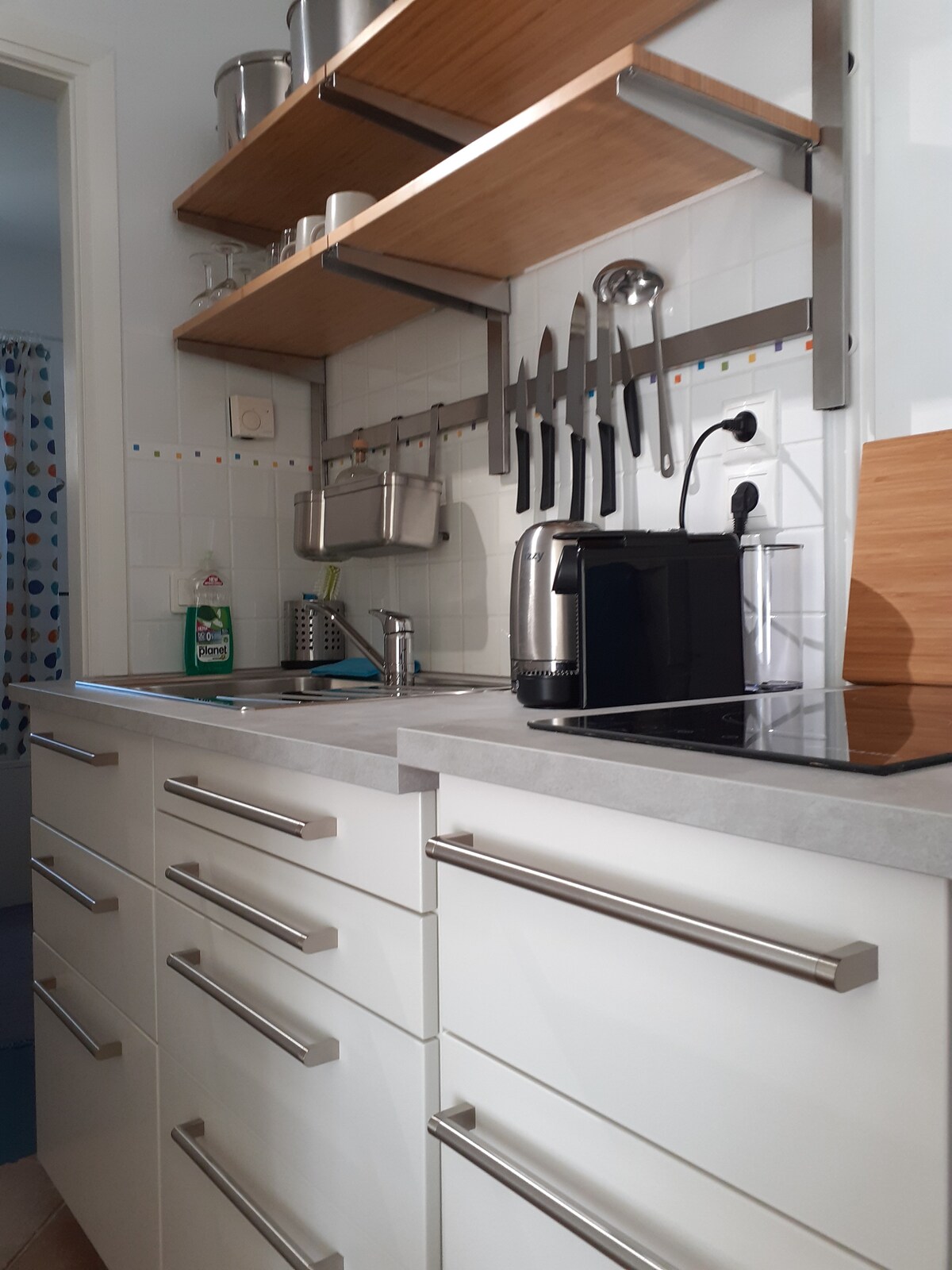 Abre las contraventanas azul marino y deja entrar la brisa refrescante, luego prepara un refrigerio en la encimera de hormigón de la cocina urbana en un refugio frente al mar. ¡Entra en la espaciosa y frondosa terraza para disfrutar de unas tranquilas bebidas al atardecer con vistas panorámicas al mar! El apartamento está situado junto a una playa de arena para nadar por la mañana y a 2 minutos a pie del centro de Naousa y su plaza principal. A pocos pasos hay tiendas, restaurantes, bares y clubes, ¡pero la zona es muy tranquila y silenciosa!