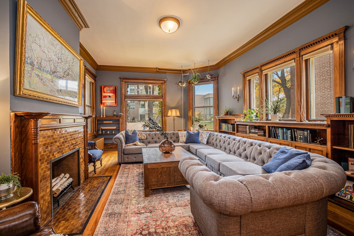 Esta impresionante mansión histórica de Walker's Point está completamente reimaginada con espacios interiores que te deleitarán a ti y a tus invitados. Organiza una reunión memorable con amigos o familiares y relájate junto a la chimenea de bioetanol, disfruta de todo lo que el vibrante barrio tiene para ofrecer. Tenemos algunos espacios hermosos para tu disfrute, incluyendo un espacio de reunión en el ático terminado y un salón secreto de inspiración vintage en el sótano. ¡Disfruta de la historia de Milwaukee de una forma nueva y espectacular!
