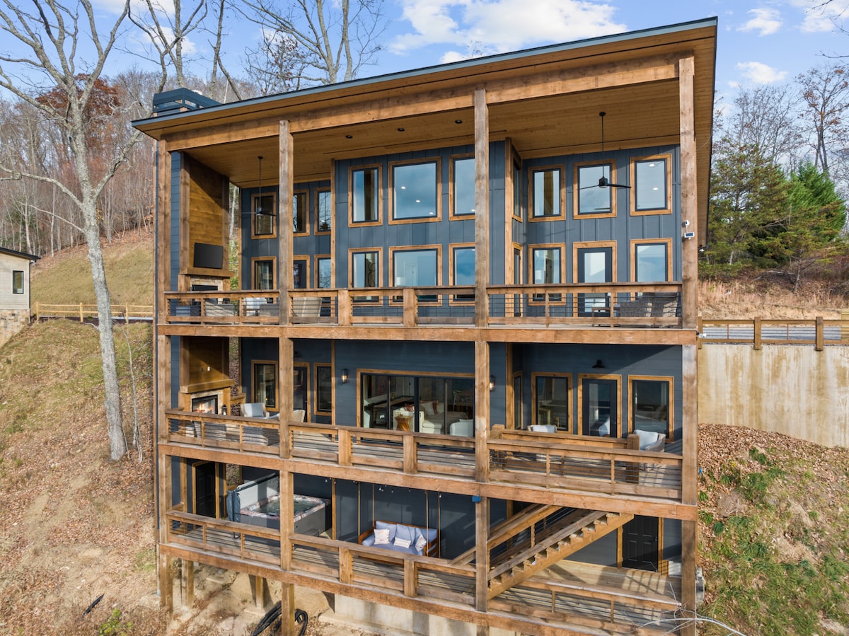 El Bluff Haus es una escapada de estilo chalé en las montañas Blue Ridge. Dos cubiertas tienen vistas a un bosque exuberante y son el material de los sueños de los Apalaches. Desde una sala de estar al aire libre hasta una bañera de hidromasaje y luces de cuerda brillantes, nuestras cubiertas son un destino vacacional en sí mismas. En el interior, esta nueva casa te inspira y te reconforta en dos pisos con un ambiente de granja, toneladas de comodidades, carga gratuita de vehículos eléctricos y grandes ventanales con infinitas vistas a los árboles.