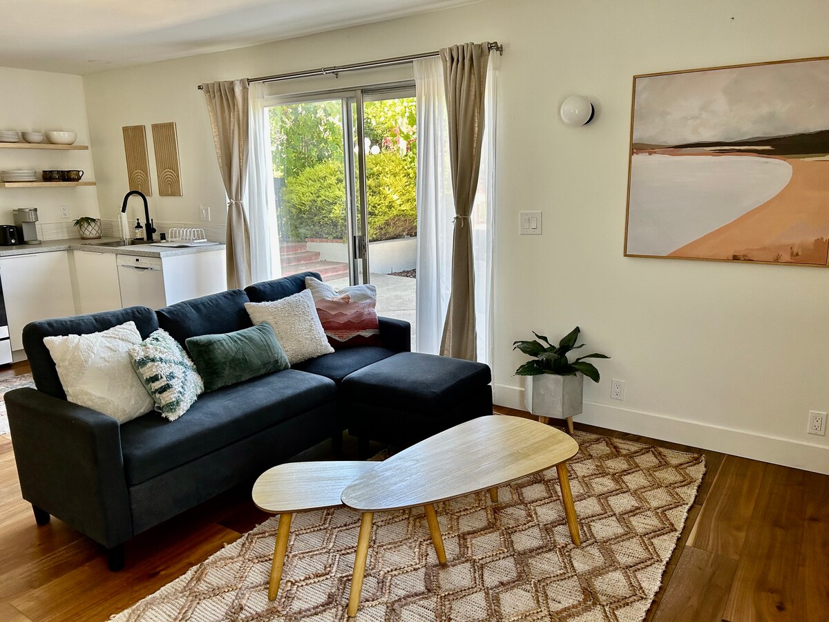 Disfruta de la brisa del mar y del sol en esta hermosa suite de invitados de 1 dormitorio, ubicada a solo 1 manzana de la playa y del parque Shoreline. Al caminar por la entrada privada, escapas a un exuberante patio ajardinado con asientos al aire libre, árboles frutales y un sol tranquilo; es el lugar perfecto para relajarse y desconectar. Estás a pocos pasos de la playa y a 5 minutos en coche del centro de la ciudad, este es el alojamiento perfecto para disfrutar de todo lo que ofrece Santa Bárbara.