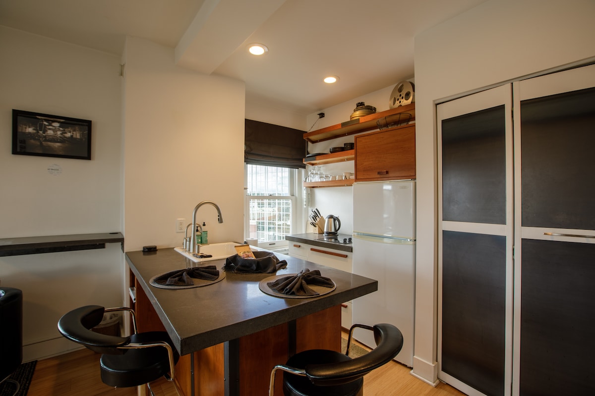 Alójate en un condominio urbano único dentro del histórico edificio del Teatro Wilma. Cinco ventanas orientadas al noroeste llenan el estudio con una hermosa luz natural, creando un acogedor refugio en el corazón del centro de Missoula. ¡Pero no te preocupes, tenemos persianas opacas si quieres dormir! Camina a restaurantes increíbles, tiendas y entretenimiento a pocos pasos. Nos entusiasma hospedarte. ¡No te olvides de echarle un vistazo a nuestras reseñas!