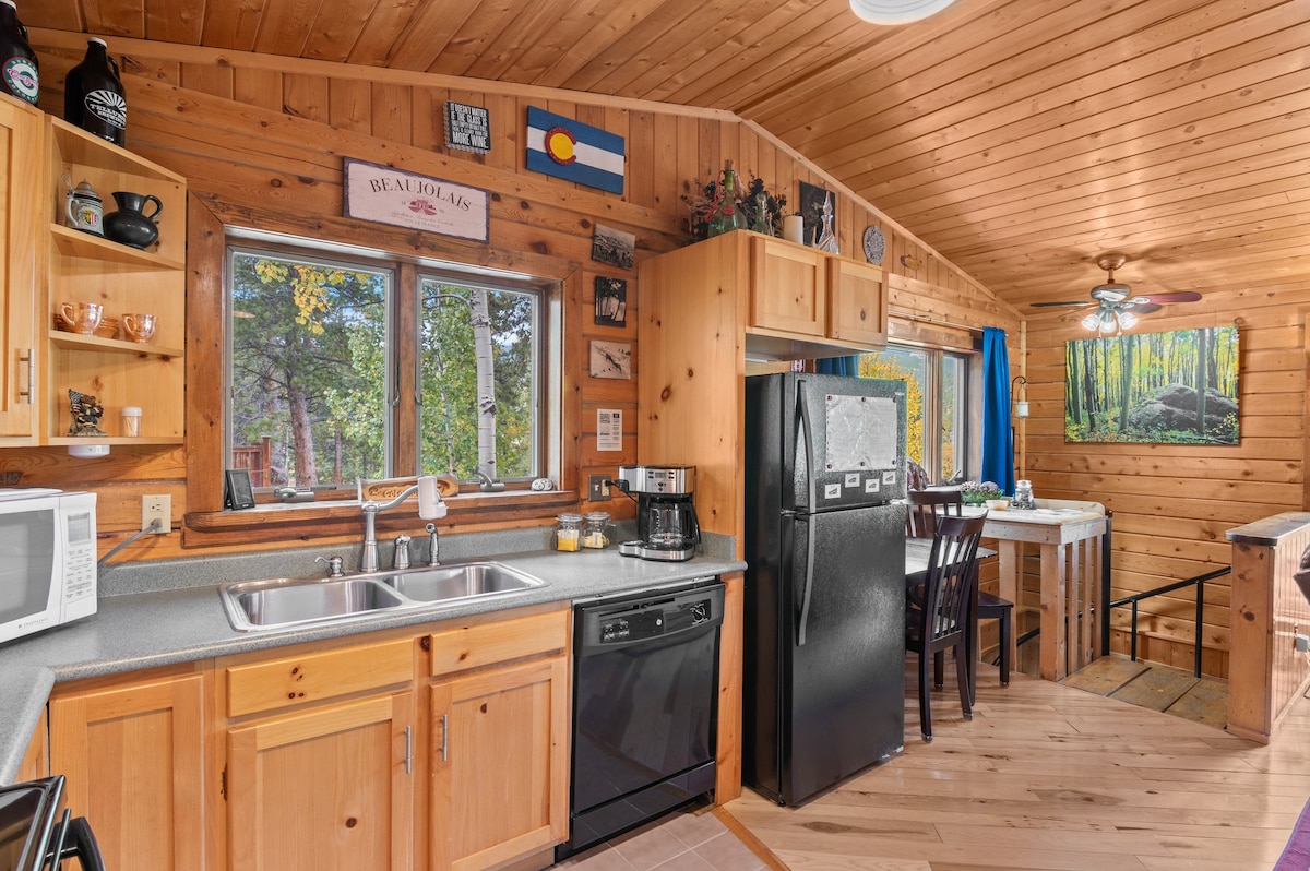 Tómate un momento para respirar el aire fresco de la montaña del condado de Gilpin mientras te acurrucas junto a una chimenea de leña y experimentas la sensación de estar en casa. A 10 minutos del parque Golden Gate. A 20 minutos de los casinos, restaurantes y vida nocturna de la histórica Black Hawk y Central City. A 15 minutos de la pequeña y mágica ciudad de Nederland, que alberga el Frozen Dead Guy, el Carrusel de la Felicidad y a 5 minutos más de la estación de esquí Eldora. ¡Sea cual sea la aventura que estés buscando, seguro que la encontrarás en nuestro rincón del bosque!