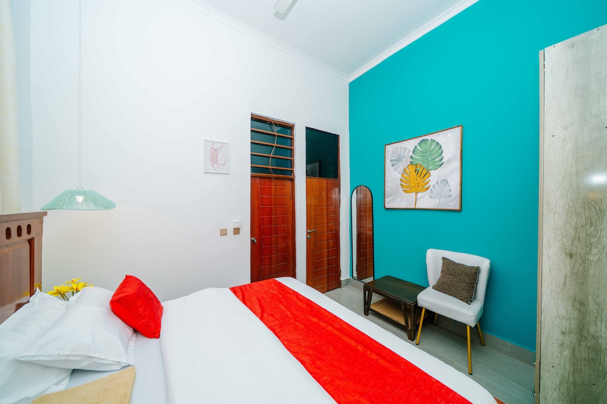 Relájate cómodamente en tu hogar lejos de casa. Esta casa de 2 dormitorios está situada en un barrio tranquilo en Kigamboni, a pocos minutos de la playa. La casa está totalmente amueblada con muebles y decoración locales de artistas locales. Incluye un dormitorio principal con baño privado con una cama doble, dormitorio individual, cocina abierta, comedor pequeño, baño completo y sala de estar. En el exterior, la casa tiene un porche privado y está rodeada de un encantador jardín durante todo el año, lleno de frutas y coloridas flores locales.