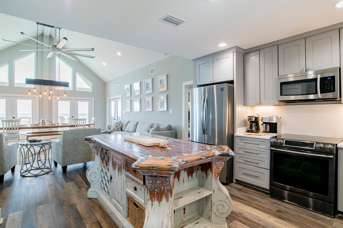 A solo unos pasos de la playa, con vistas al mar, además de un carrito de playa y equipo para que cada viaje sea fácil. Esta elegante vivienda de 2 dormitorios y 1,5 baños tiene capacidad para 6 personas, con una cama tamaño queen en el dormitorio principal, 2 camas completas y un sofá cama tamaño queen. Disfruta de una ducha al aire libre, parrilla, lavadora/secadora, wifi, cargador para vehículos eléctricos, juegos y amplio estacionamiento para embarcaciones o casas rodantes. Relájate en patios acogedores y disfruta de la tranquilidad de Ft. Playas de Morgan, excelente pesca y búsqueda de conchas a pocos minutos.