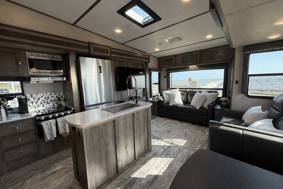 Skip the hassle of towing and setup, our rental RV experience at Dockside RV Resort lets you arrive and relax from the moment you get here. Nestled on a full-hook-up site, your rental unit is ready to go so you can focus on enjoying your getaway. Designed with comfort and convenience in mind, our RV includes 3 private sleeping areas, a functional kitchen, a private bathroom, and inviting living space giving you all the comforts of home while you soak in the natural beauty of the Gulf Coast.