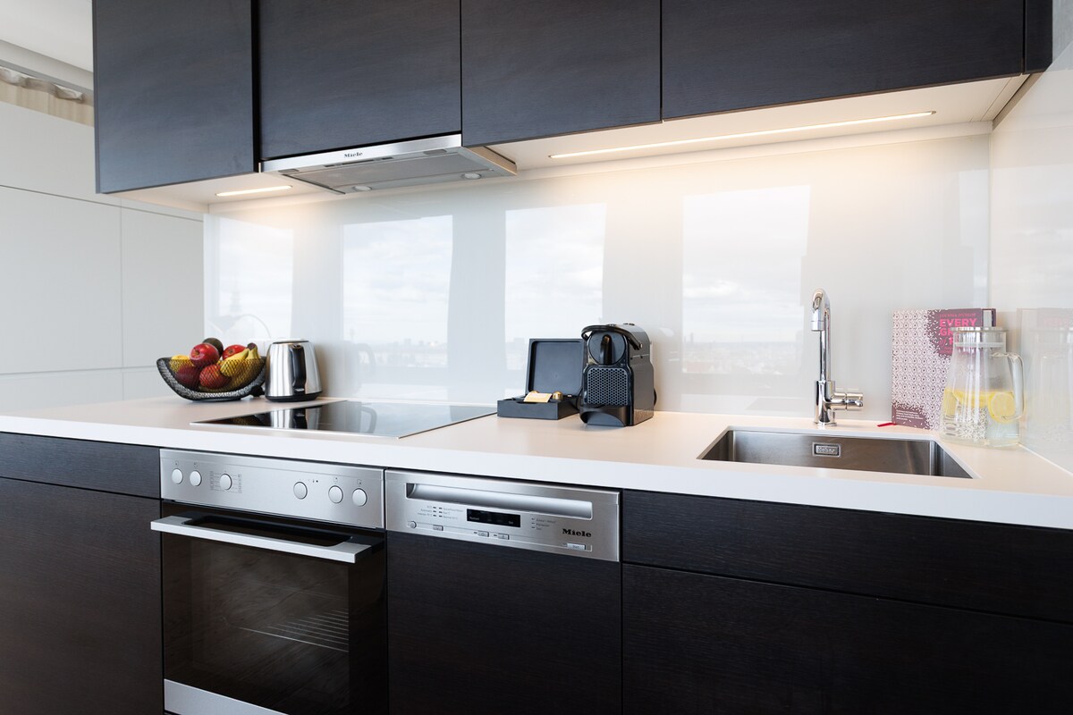 Vistas increíbles | Conexión perfecta | Atmósfera tranquila | 4 personas ✔ Wifi de alta velocidad y TV inteligente gratuitos ✔ Cama tamaño king con ropa de cama de lujo + cama plegable. ✔ Bañera ✦ Supermercado, gimnasio y restaurante justo en el edificio ✔ Espacio de trabajo o estudio ✔ Cafetera y lavavajillas ✔ Check-in autónomo para llegada flexible y asistencia al huésped 24/7 Comodidad y funcionalidad perfectamente combinadas.