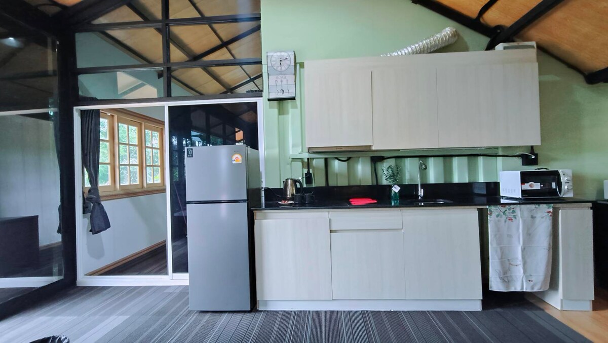Relájate juntos en un alojamiento tranquilo. Exuberante ambiente natural con vistas a la montaña Hay instalaciones completas como aire acondicionado, nevera, lavadora, horno microondas, cocina, estufa de gas, calentador de agua. El estacionamiento está disponible de forma gratuita. Los vehículos todoterreno están disponibles para conducir. A solo 5 minutos de 7 a 11. A solo 1 minuto de la gasolinera. A solo 5 minutos de las atracciones de aguas termales. Caja fuerte. A solo 1 minuto de la estación de policía. Baan Rak Thai está a solo 1 hora.